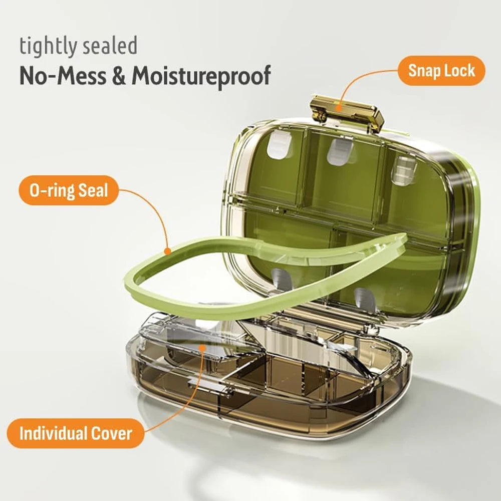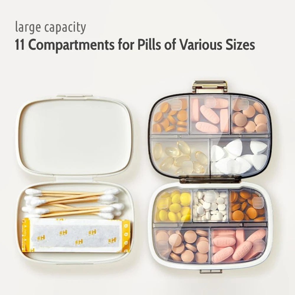 Stay organized and travel-ready with the MediCase 10, a compact pill organizer featuring 10 secure compartments for your daily medication, vitamins, or small essentials. Made from BPA-free, food-grade PP, it keeps your pills clean, dry, and easy to access — perfect for home use or short trips.
